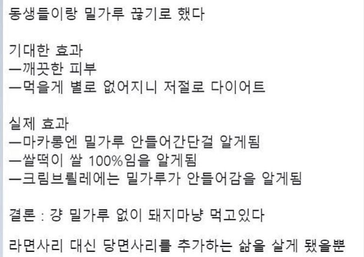 또한 많은 사람들이 밀가루를 끊고 나서 포만감이 오래 지속된다고 해요